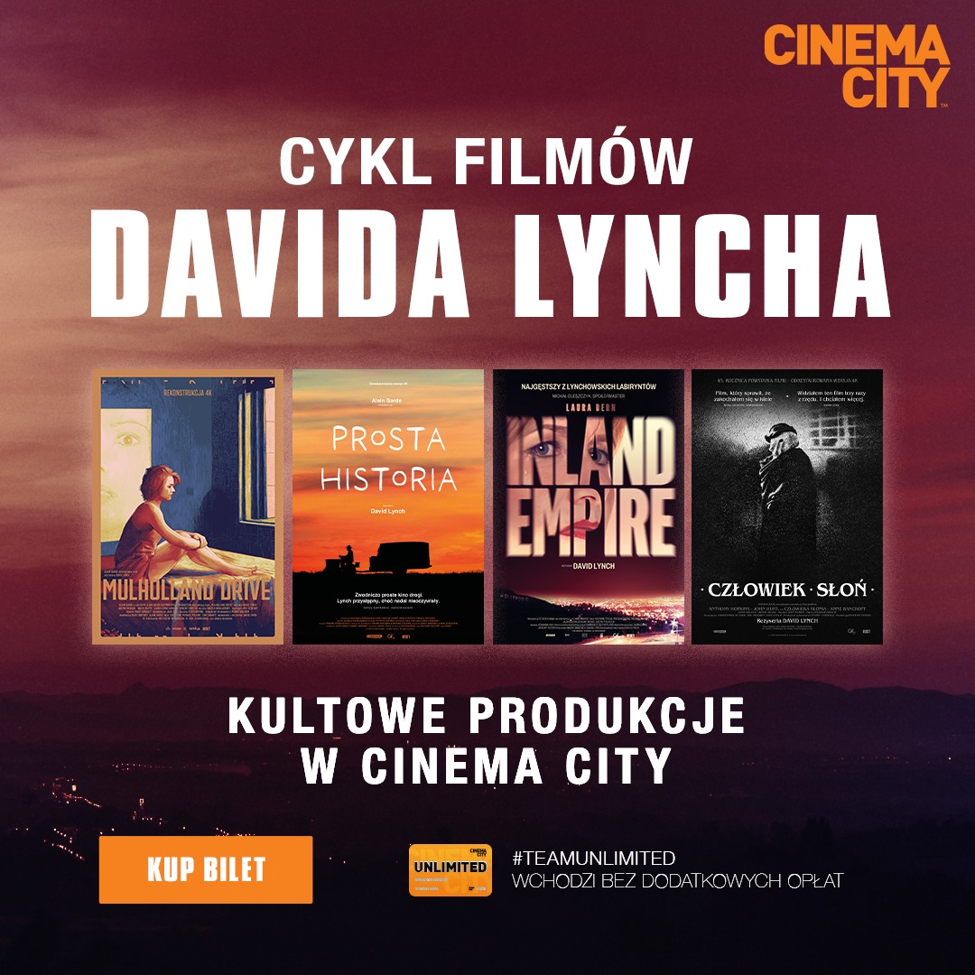 Rozpoczyna się filmowe lato pod znakiem Davida Lyncha. W najbliższych tygodniach do kin trafią dzieła jednego z najbardziej oryginalnych reżyserów, który wywarł ogromny wpływ nie tylko na widzów, ale i kolejne pokolenia twórców. Dzięki współpracy Gutek Film oraz firmy Reset – dystrybutora kinowej klasyki – widzowie będą mieli szasnę obejrzeć trzy filmy, w dodatku w odrestaurowanych wersjach 4K. Będą to: „Prosta historia”, „Inland Empire" oraz „Człowiek słoń". Filmy grane będą w kinach studyjnych i multipleksach w ramach specjalnych wydarzeń oraz licznie organizowanych przeglądów twórczości Davida Lyncha. Jednym z nich jest cykl w Cinema City, który 6 czerwca zainauguruje „Mulholland Drive”.